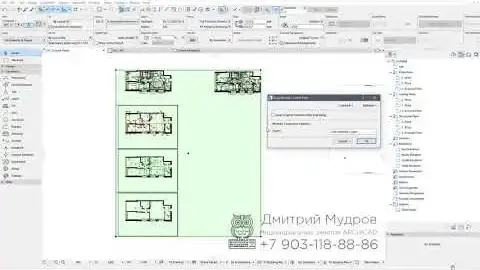 Моделирование здания по чертежам в архикаде. Building modeling according to drawings in Archicad.
